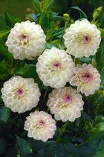 Bring timeless elegance to your garden with Dahlia Ball ‘Eveline’, a stunning variety featuring perfectly rounded, soft white blooms delicately tinged with lavender-pink hues at the petal edges. Its refined shape and gentle colouring make it an ideal choice for borders, containers, and cut flower arrangements, blooming continuously from mid-summer until the first frost.